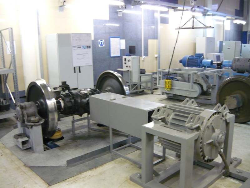 - установку редукторной колесной пары на стенде по стандартным креплениям, вращение колесной пары осуществляется при помощи обрезиненных катков;