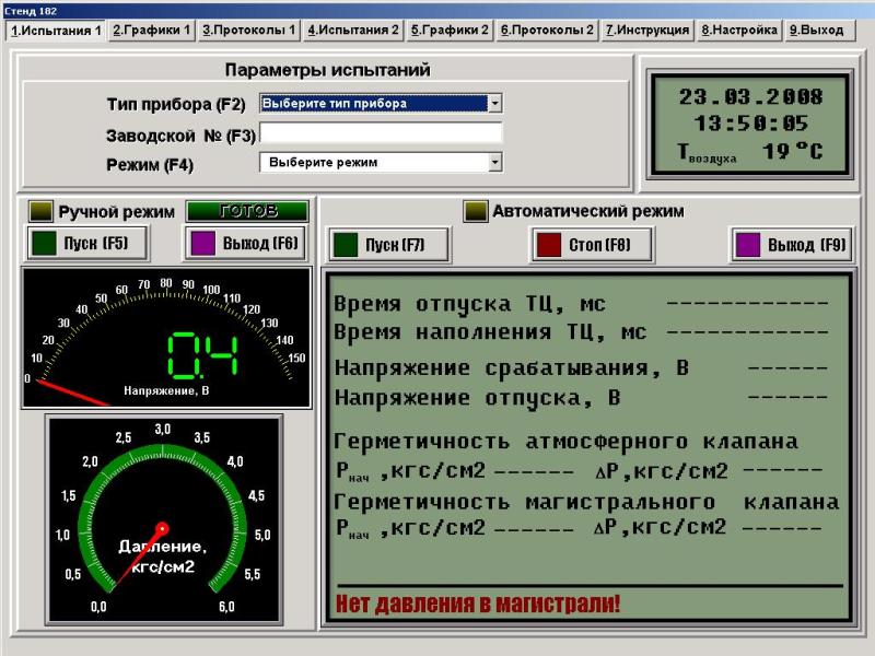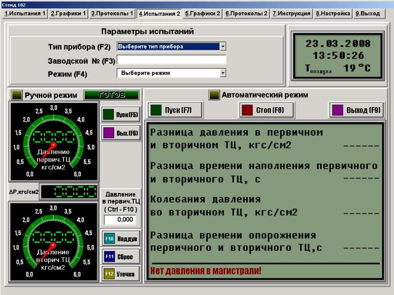 - испытание в автоматическом режиме, испытание и настройку в ручном режиме;