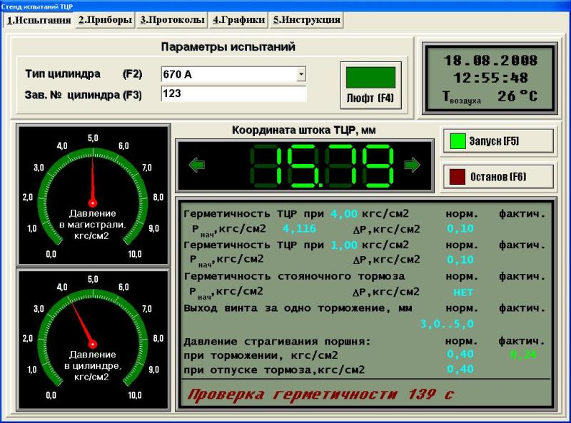- испытание в автоматическом режиме, испытание и калибровку стенда настройку в ручном режиме;
