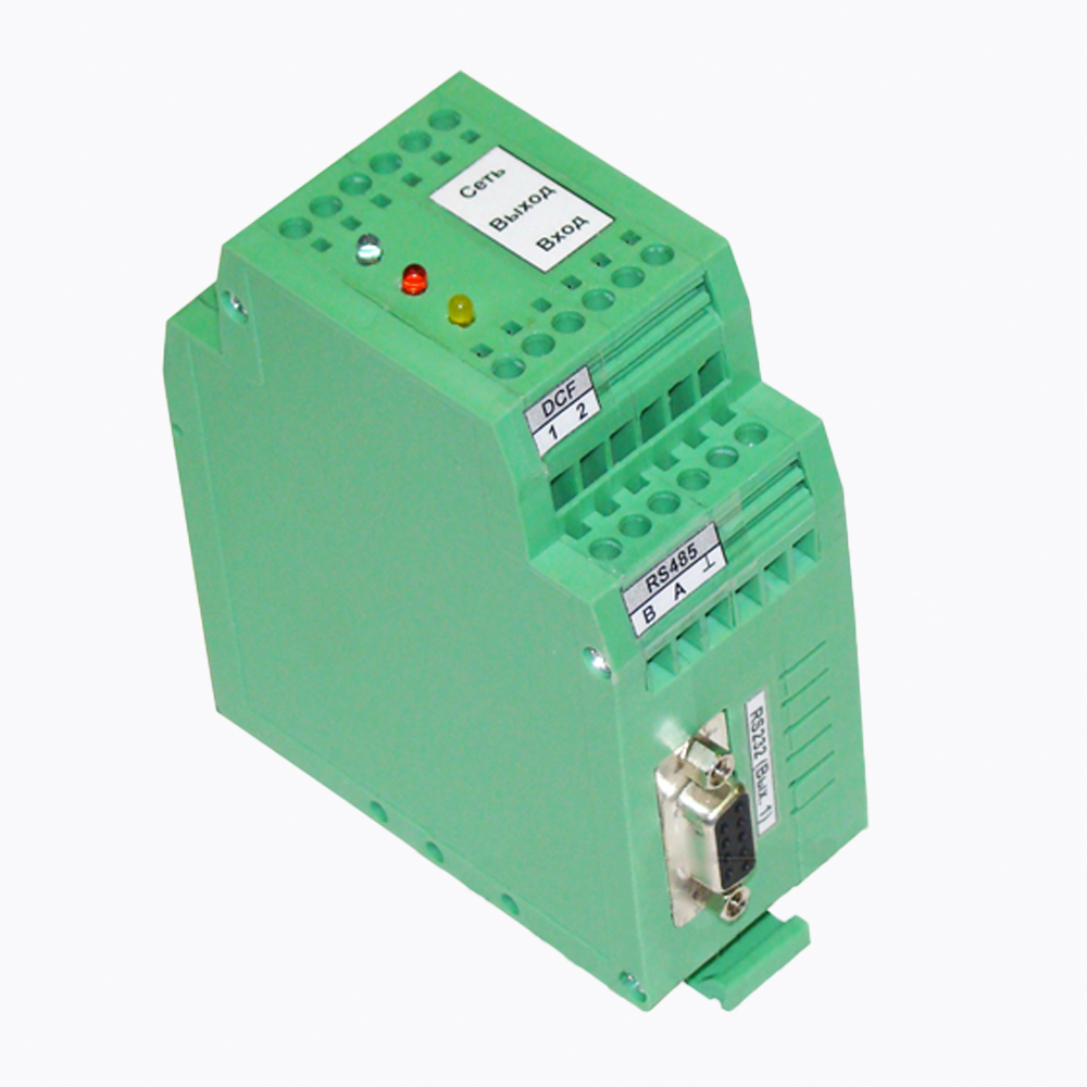 Формирователь имеет два входа синхронизации по стыкам RS-232 и RS-485 и один выход синхронизации типа пассивная «токовая петля». При наличии на каком-либо входе синхронизации формирователя посылки с информацией о текущем времени и дате, следующей с периодичностью в 1 секунду, на его выходе формируются DCF-сигнал.